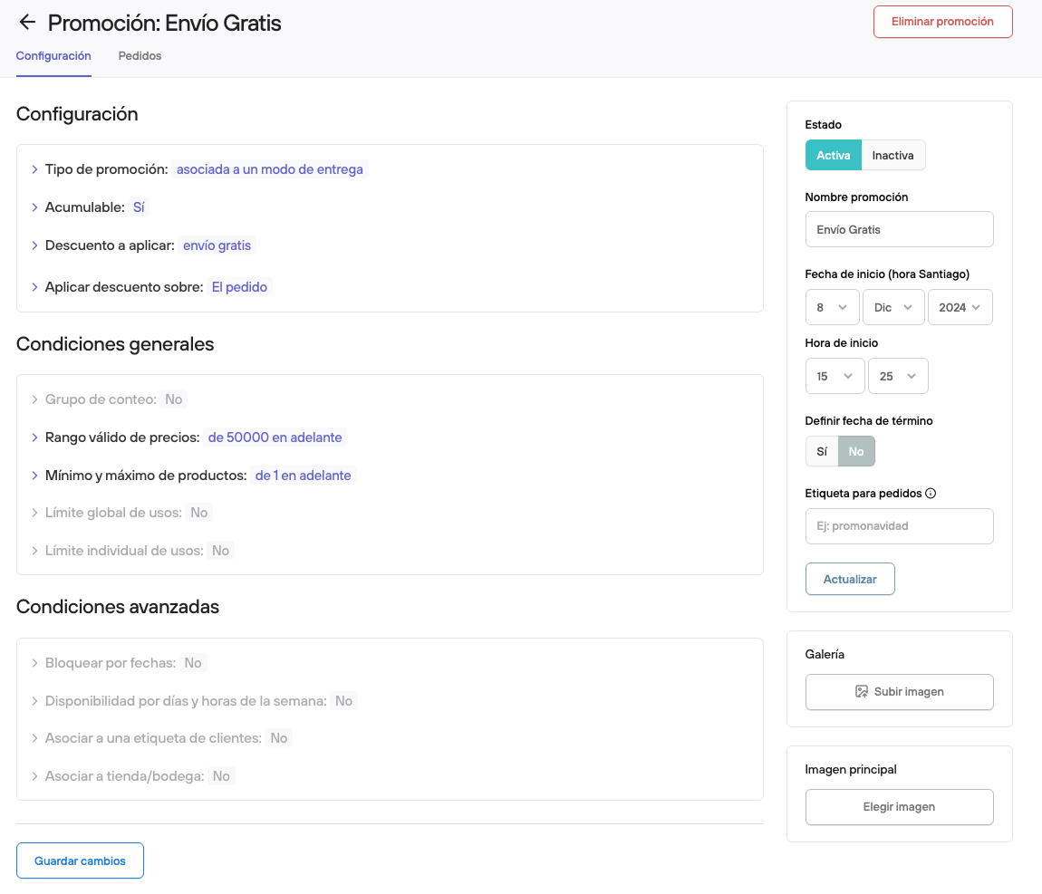 Ejemplo: Envío gratis en compras sobre $50.000